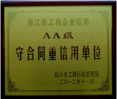 公司獲2012年度浙江省工商企業信用“AA級”守合同重信用單位